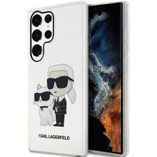 Carcasa Karl Lagerfeld Glitter Karl and Choupette compatibila cu Samsung Galaxy S23 Ultra, Transparent Cod produs: KAR-176262