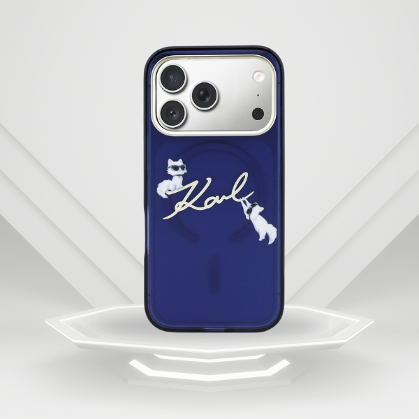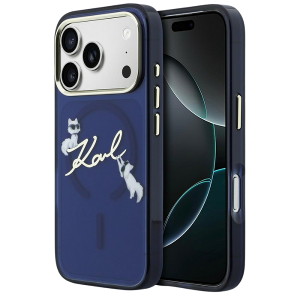 Carcasa Karl Lagerfeld IML Choupettes Karl Script Logo cu MagSafe compatibila cu iPhone 17 Pro Max, Albastru Cod produs: KAR-177579
