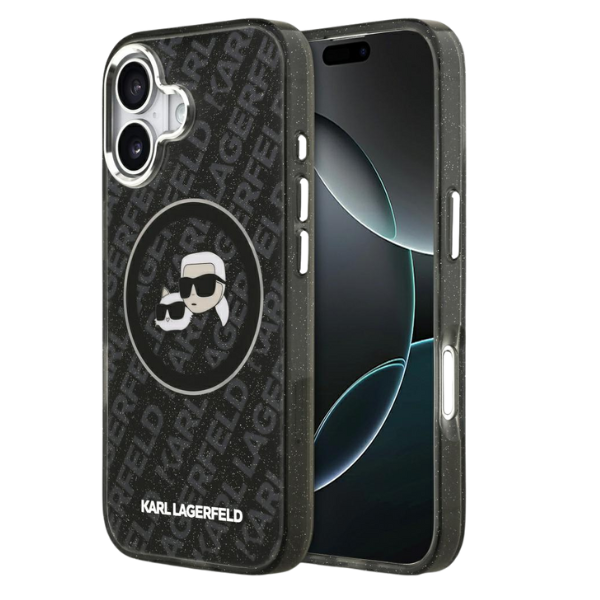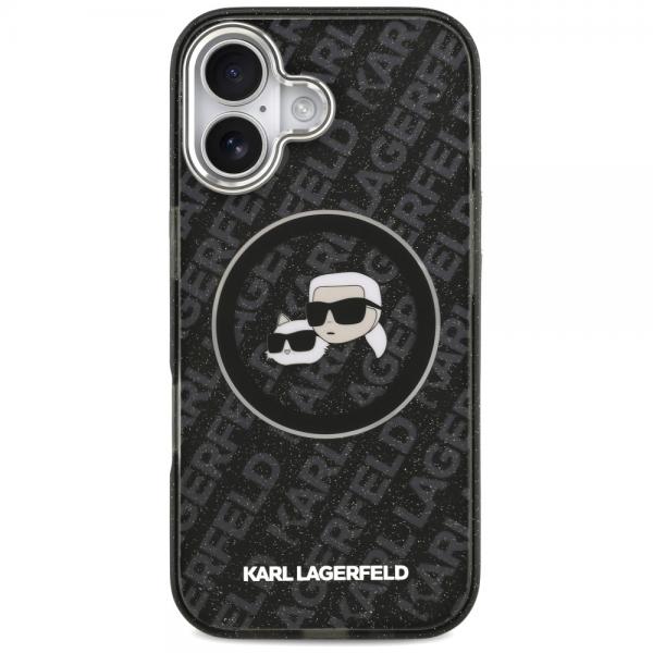 Carcasa Karl Lagerfeld IML Glitter Karl and Choupette Heads Logo cu MagSafe compatibila cu iPhone 17, Negru