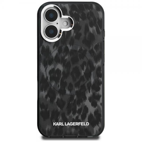 Carcasa Karl Lagerfeld IML Leopard Pattern cu MagSafe compatibila cu iPhone 16, Negru