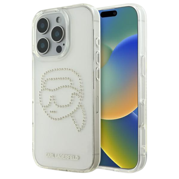 Carcasa Karl Lagerfeld IML Rhinestones Karl Head compatibila cu iPhone 16 Pro, Transparent Cod produs: KAR-172351