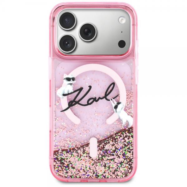 Carcasa Karl Lagerfeld Liquid Glitter Karl Script Logo cu MagSafe compatibila cu iPhone 17 Pro Max, Roz