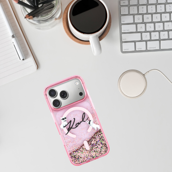 Seria Karl Lagerfeld Liquid Glitter Karl Script Logo MagSafe este soluția perfectă pentru cei care caută armonie între funcționalitate și stil excepțional pentru smartphone-ul lor. Oferind protecție solidă, această colecție unică nu doar că asigură siguranța dispozitivului, ci adaugă și un caracter distinctiv, atrăgând atenția cu designul său unic.
