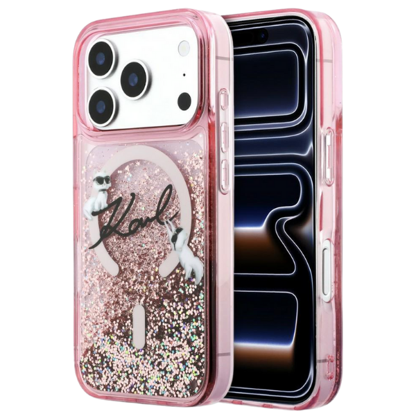 Carcasa Karl Lagerfeld Liquid Glitter Karl Script Logo cu MagSafe compatibila cu iPhone 17 Pro Max, Roz Cod produs: KAR-177603