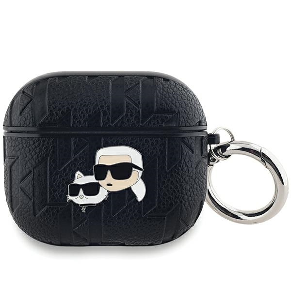 Carcasa Karl Lagerfeld Monogram Karl and Choupette Head compatibila cu Apple AirPods 3, Negru
