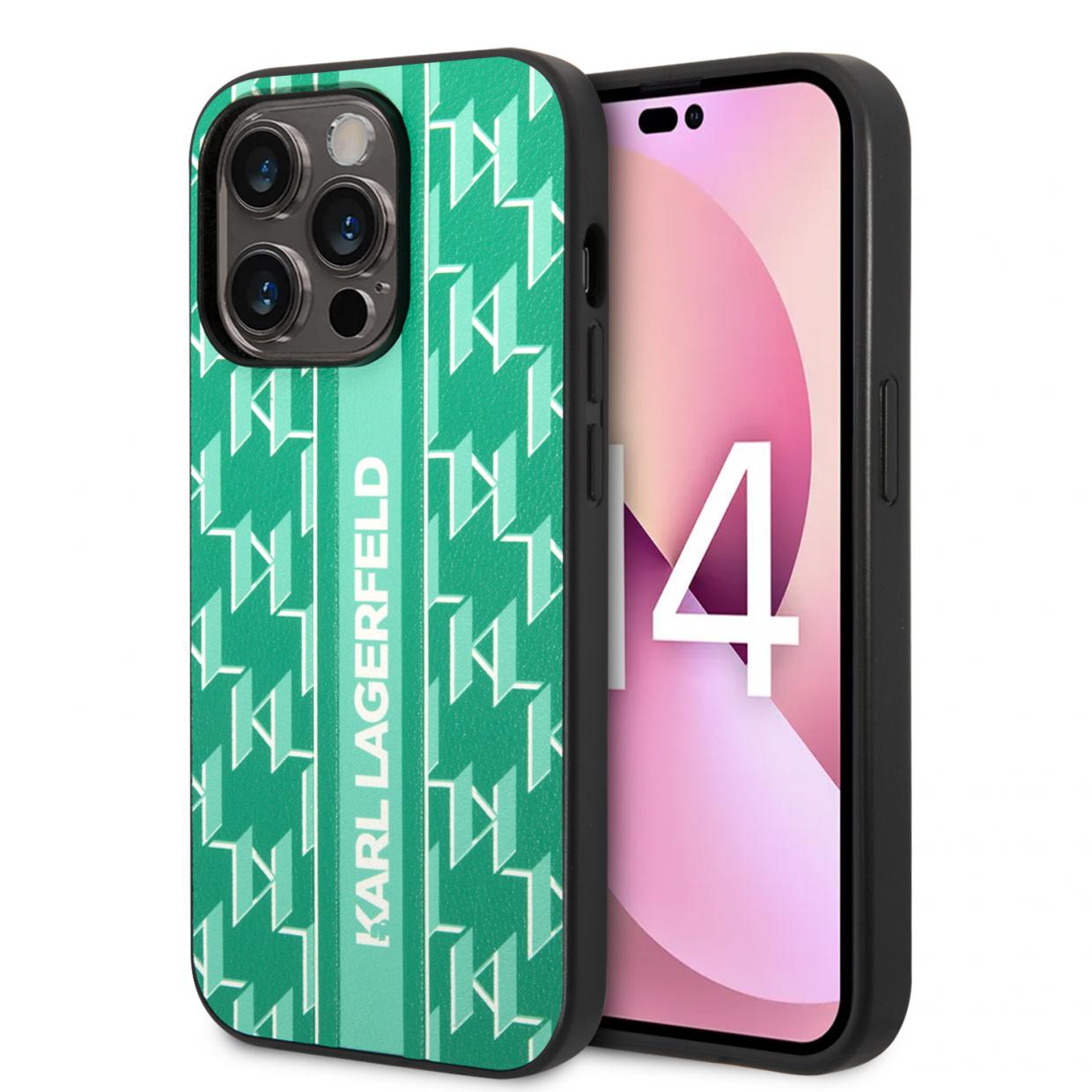 Carcasa Karl Lagerfeld Monogram Stripe compatibila cu iPhone 14 Pro Max, Verde Cod produs: KAR-177645