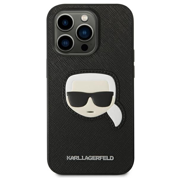 Carcasa Karl Lagerfeld Saffiano Karl Head Patch compatibila cu iPhone 14 Pro, Negru