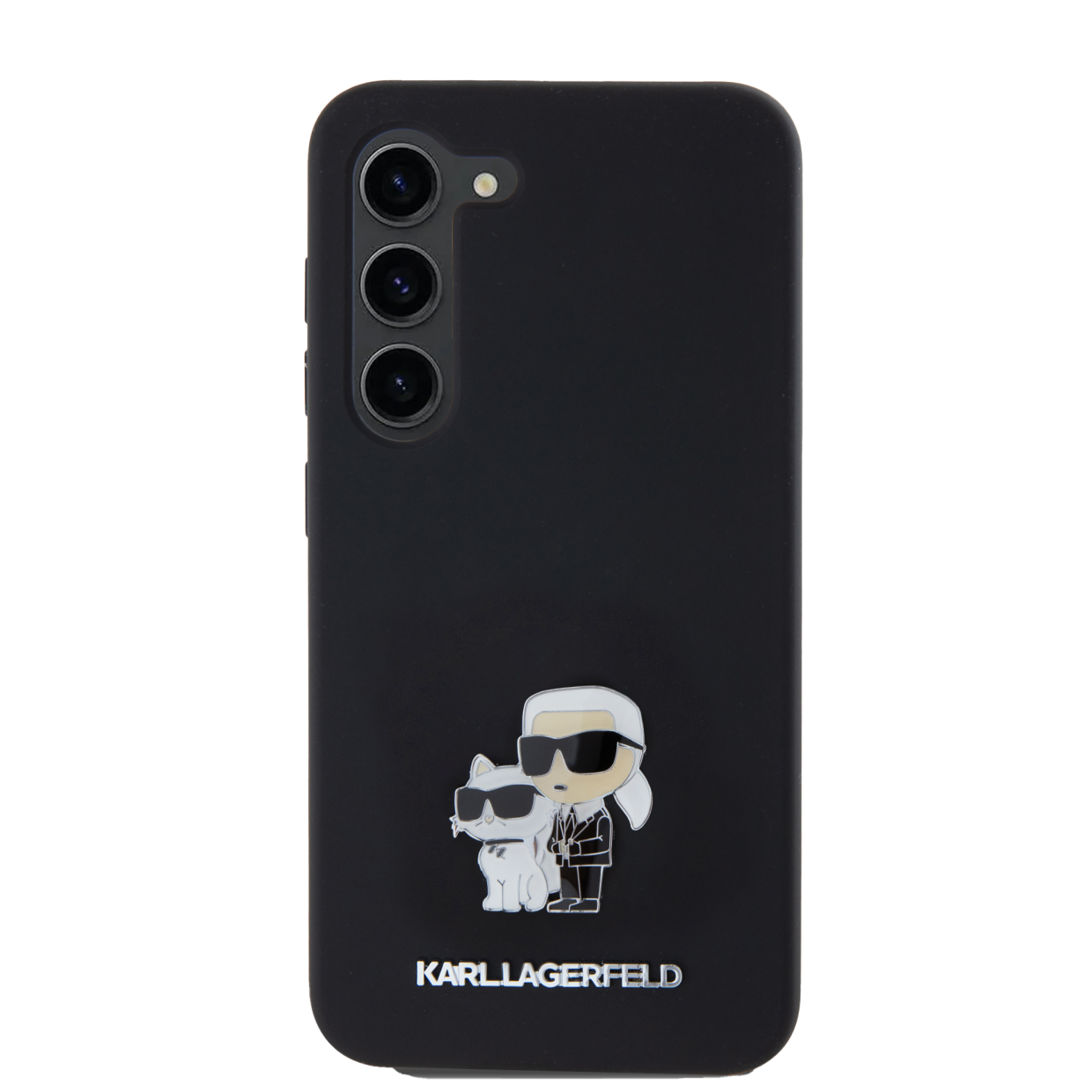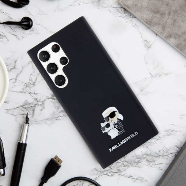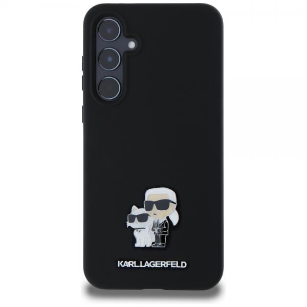 Carcasa Karl Lagerfeld Silicone Karl and Choupette Metal Pin compatibila cu Samsung Galaxy A55, Negru