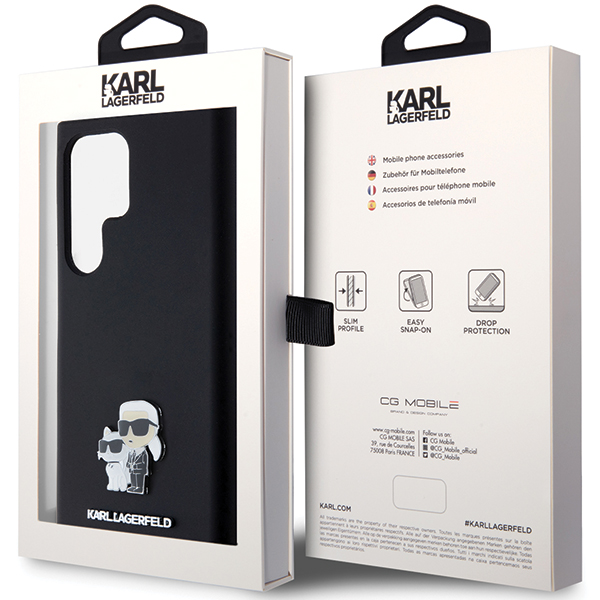 Carcasa Karl Lagerfeld Silicone Karl and Choupette Metal Pin compatibila cu Samsung Galaxy S23 Ultra, Negru Cod produs: KAR-176266