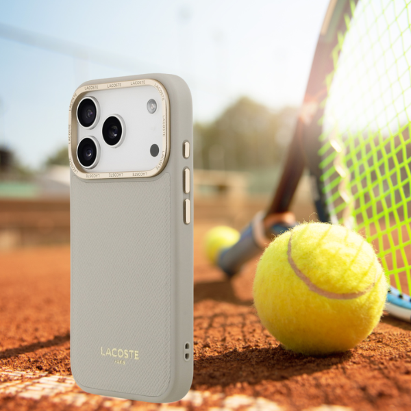 Carcasa Lacoste Champs Elysees Gold Logo cu MagSafe compatibila cu iPhone 17 Pro, Gri