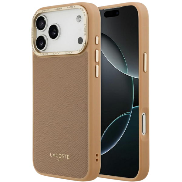 În plus, colecția este decorată cu un logo auriu LACOSTE și o ramă aurie în jurul camerei.