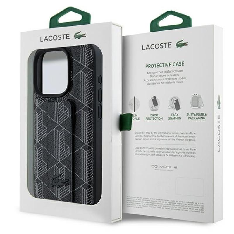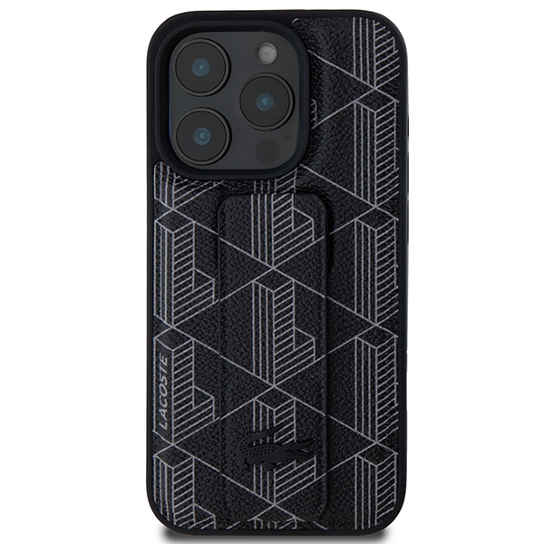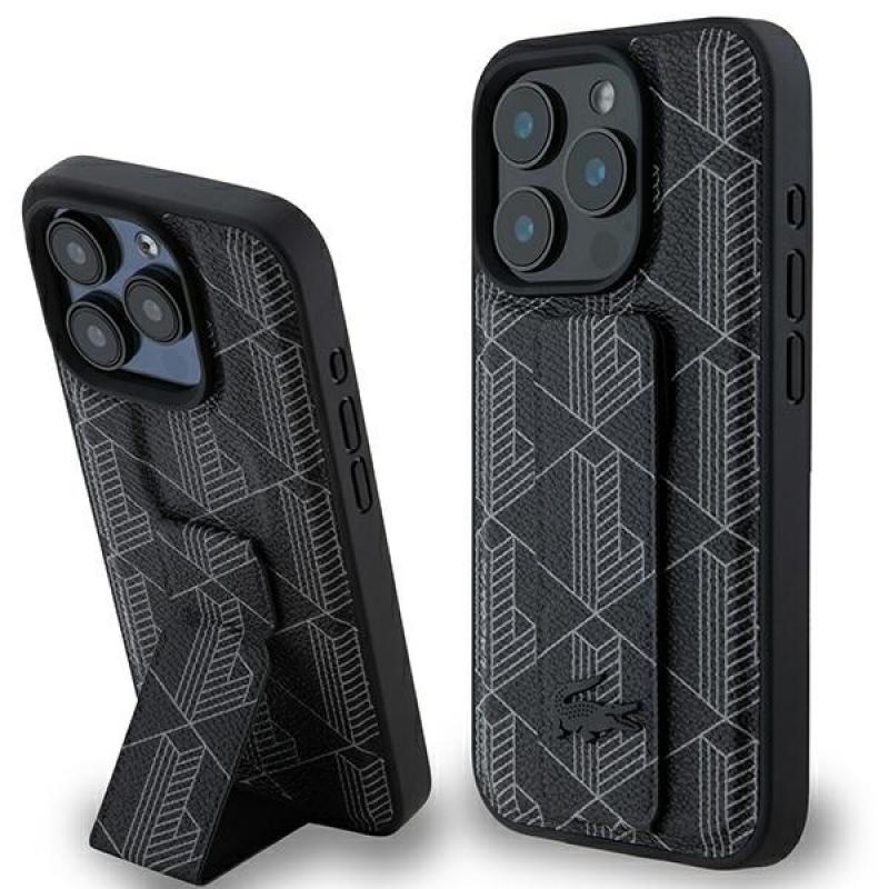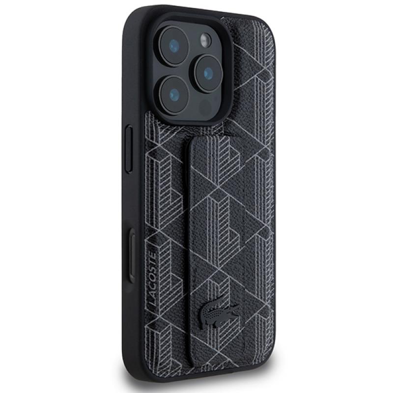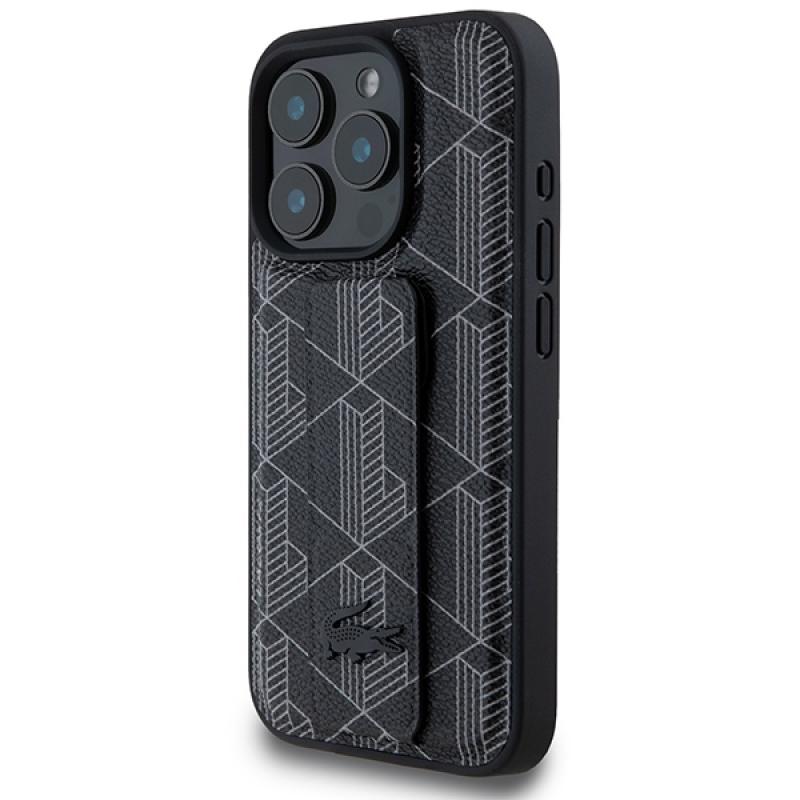 Carcasa Lacoste Grip Stand Mono compatibila cu iPhone 16 Pro, Negru