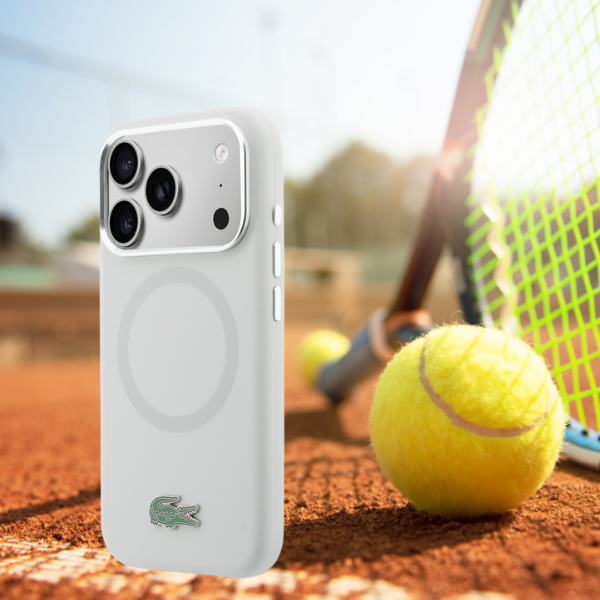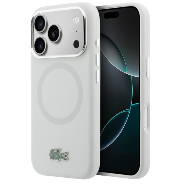 Carcasa Lacoste HC Silicone Metal Logo cu MagSafe compatibila cu iPhone 17 Pro, Gri