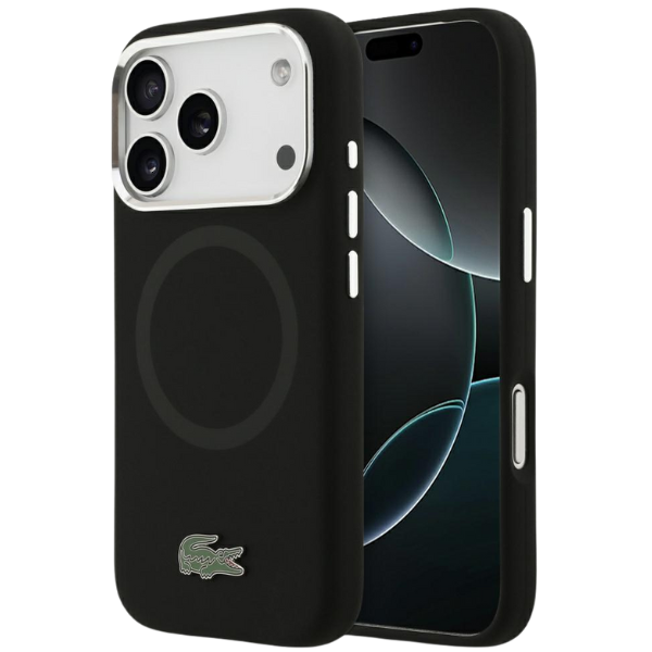 Carcasa Lacoste HC Silicone Metal Logo cu MagSafe compatibila cu iPhone 17 Pro, Negru