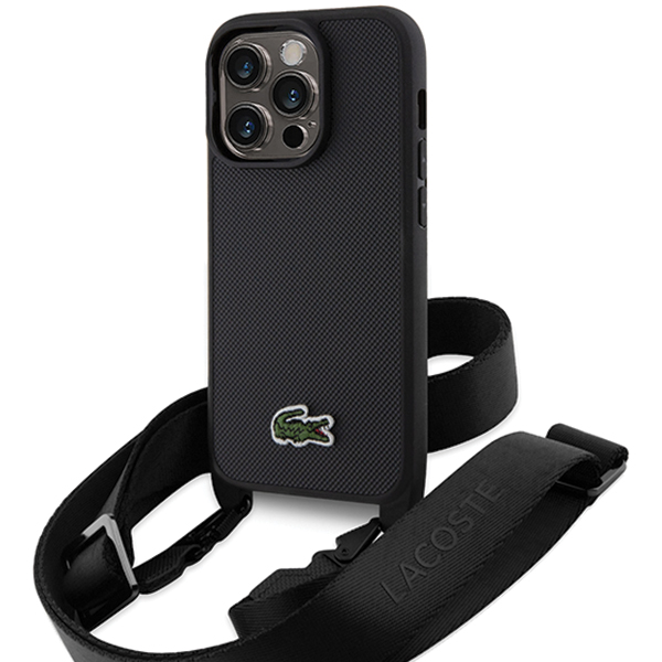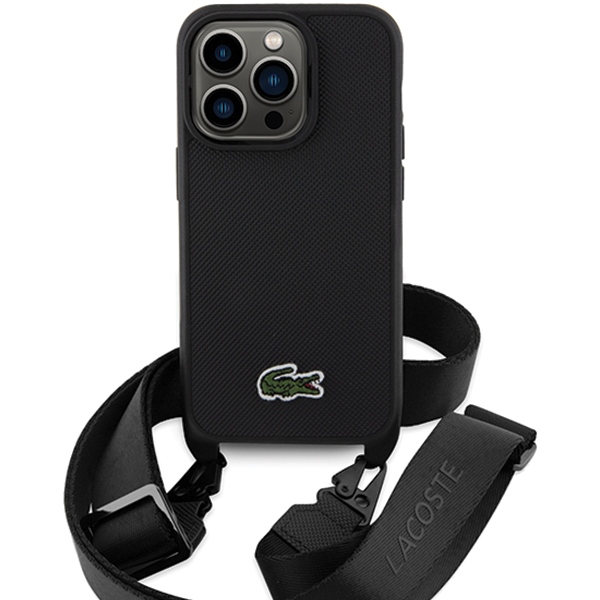 Carcasa Lacoste Iconic Petit Pique Crossbody compatibila cu iPhone 15 Pro Max, Negru
