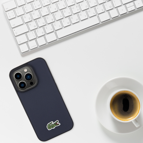 Carcasa Lacoste Iconic Petit Pique cu MagSafe compatibila cu iPhone 15 Pro Max, Navy Blue