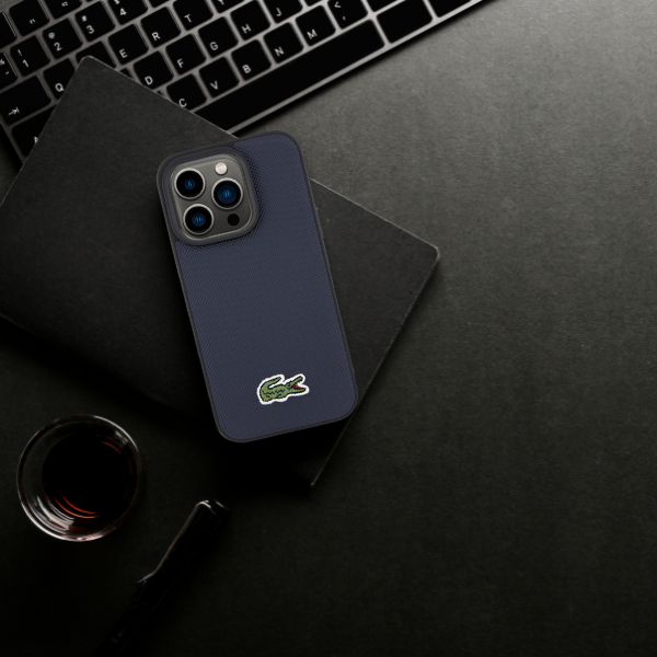 Carcasa Lacoste Iconic Petit Pique cu MagSafe compatibila cu iPhone 15 Pro, Navy Blue