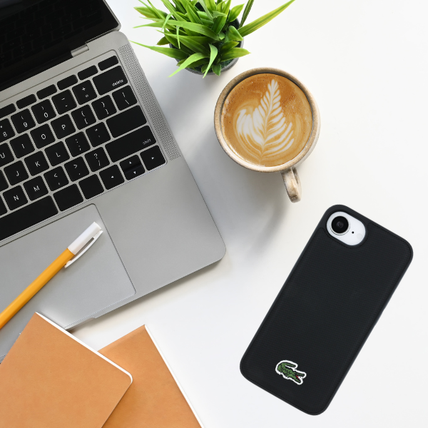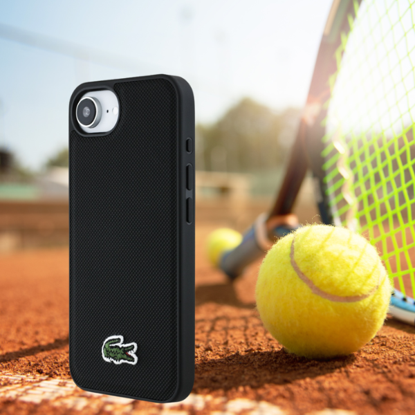 Carcasa Lacoste Iconic Petit Pique Woven Logo cu MagSafe compatibila cu iPhone 16e, Negru