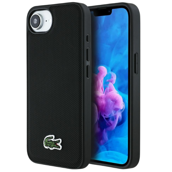 Carcasa Lacoste Iconic Petit Pique Woven Logo cu MagSafe compatibila cu iPhone 16e, Negru Cod produs: LAC-175670