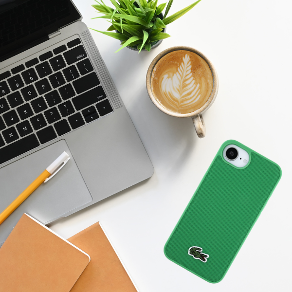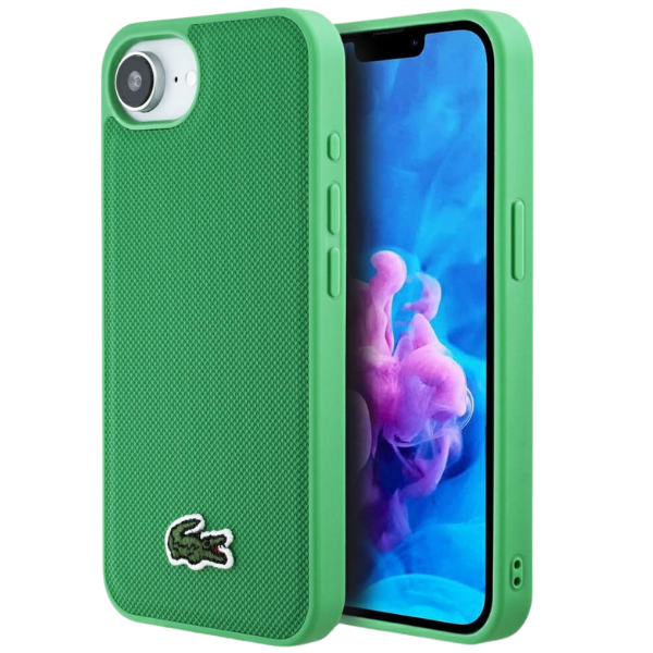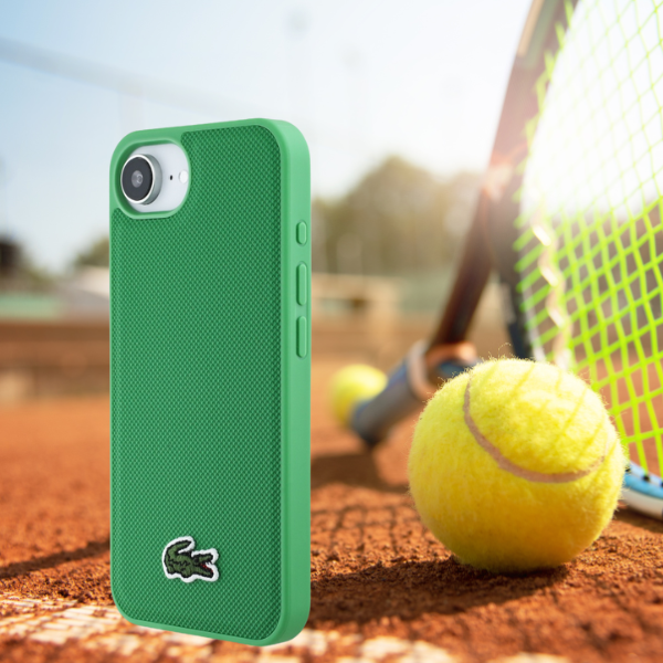 Carcasa Lacoste Iconic Petit Pique Woven Logo cu MagSafe compatibila cu iPhone 16e, Verde
