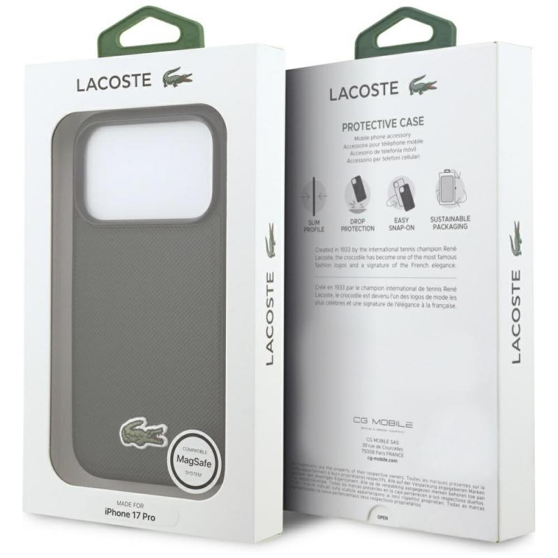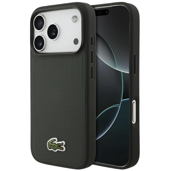 Carcasa Lacoste Iconic Petit Pique Woven Logo cu MagSafe compatibila cu iPhone 17 Pro, Dark Green