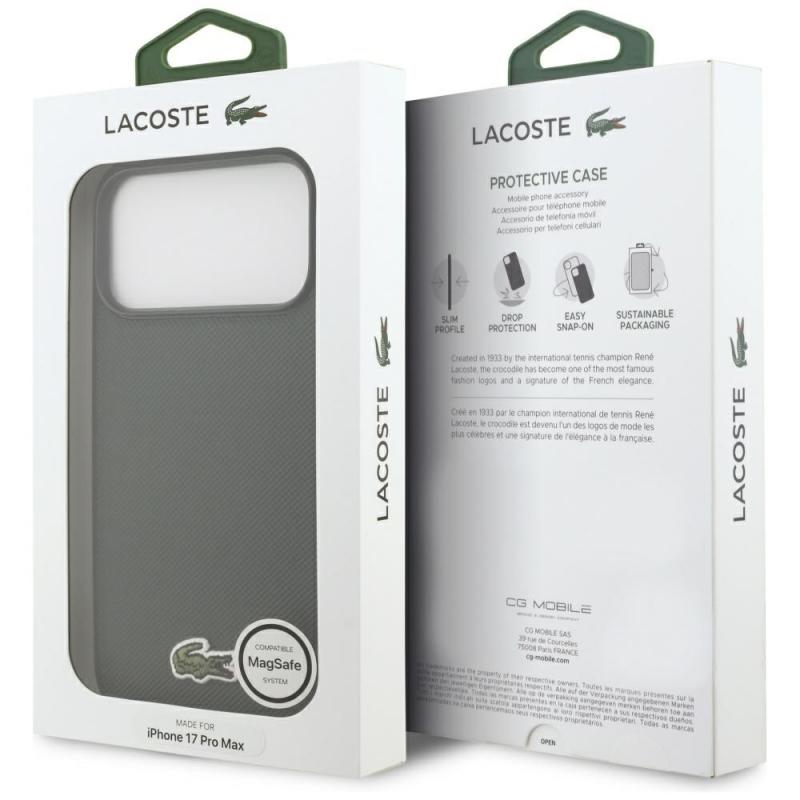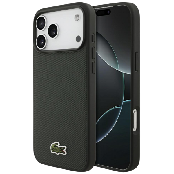 Carcasa Lacoste Iconic Petit Pique Woven Logo cu MagSafe compatibila cu iPhone 17 Pro Max, Dark Green