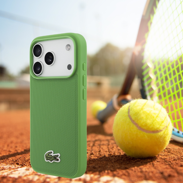 Carcasa Lacoste Iconic Petit Pique Woven Logo cu MagSafe compatibila cu iPhone 17 Pro, Verde Cod produs: LAC-175675