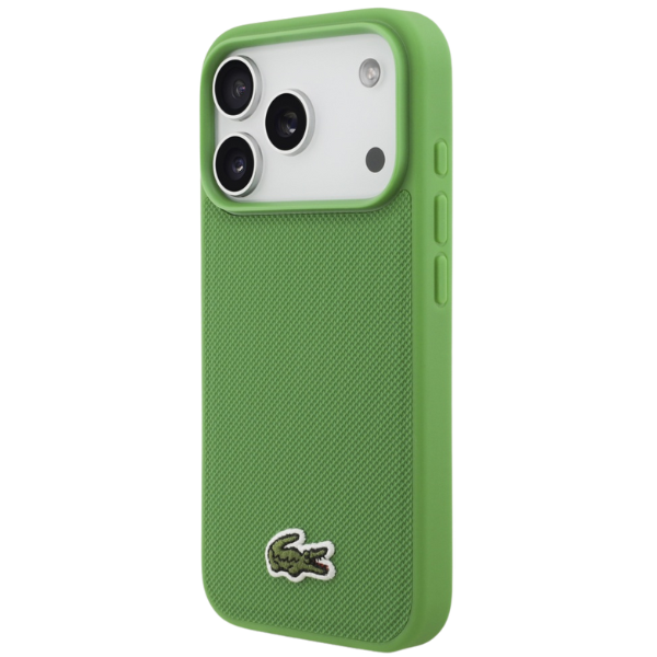 Carcasa Lacoste Iconic Petit Pique Woven Logo cu MagSafe compatibila cu iPhone 17 Pro, Verde