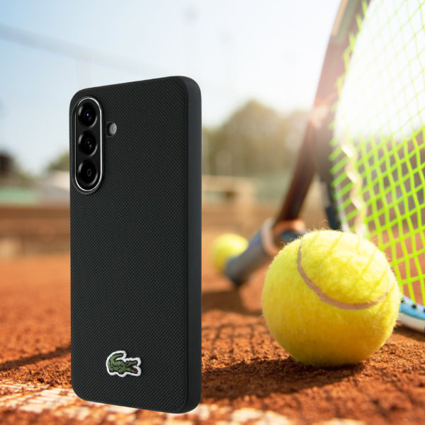 Carcasa Lacoste Iconic Petit Pique Woven Logo cu MagSafe compatibila cu Samsung Galaxy A56, Negru