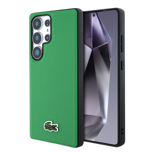 Carcasa Lacoste Iconic Petit Pique Woven Logo cu MagSafe compatibila cu Samsung Galaxy S25 Ultra, Verde