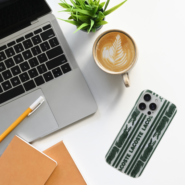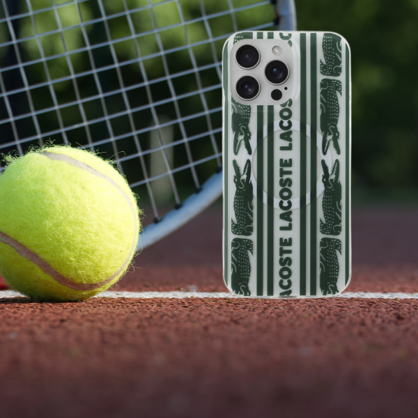 Exclusivul model care acoperă întreaga suprafață a husei surprinde perfect stilul unic al mărcii Lacoste, oferind dispozitivului un aspect modern și elegant. Colecția este împodobită cu imagini ale iconicului crocodil și al logo-ului Lacoste.