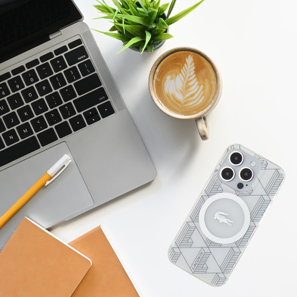 Carcasa Lacoste IML Blend Monogram cu MagSafe compatibila cu iPhone 15 Pro Max, Alb Cod produs: LAC-175386