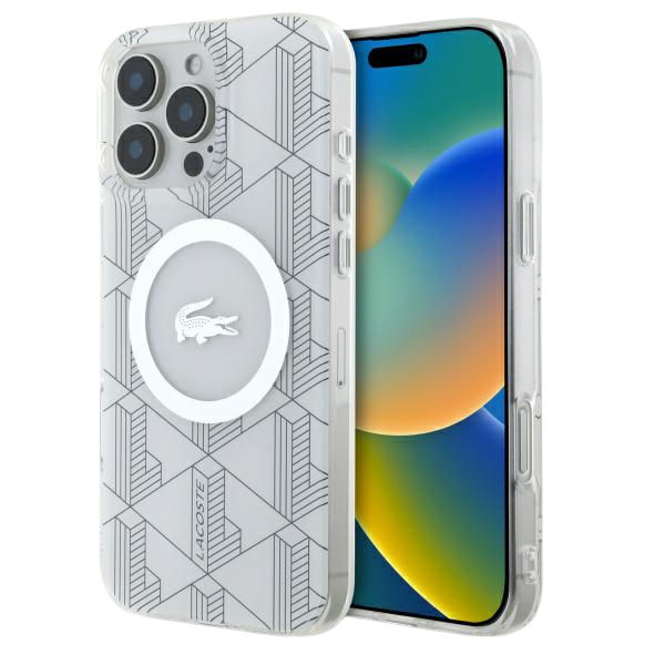 Carcasa Lacoste IML Blend Monogram cu MagSafe compatibila cu iPhone 16 Pro Max, Gri