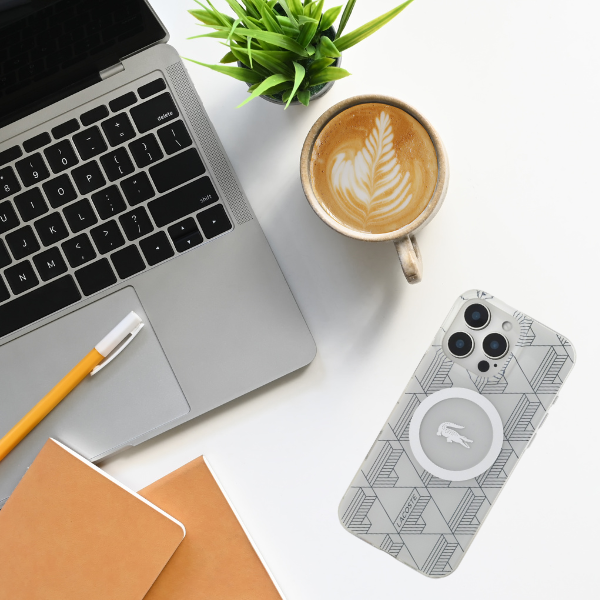 Monograma exclusivă care acoperă întreaga suprafață a husei surprinde perfect stilul unic al mărcii Lacoste, oferind dispozitivului un aspect modern și elegant. Colecția este înfrumusețată și cu un emblema subtilă care prezintă iconicul crocodil. Acest mic detaliu asigură autenticitatea și cea mai înaltă calitate a meșteșugului, făcând husa alegerea perfectă pentru cei care apreciază stilul și funcționalitatea într-un singur produs.