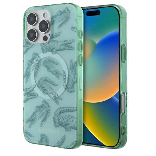 Carcasa Lacoste IML Croc cu MagSafe compatibila cu iPhone 16 Pro Max, Verde