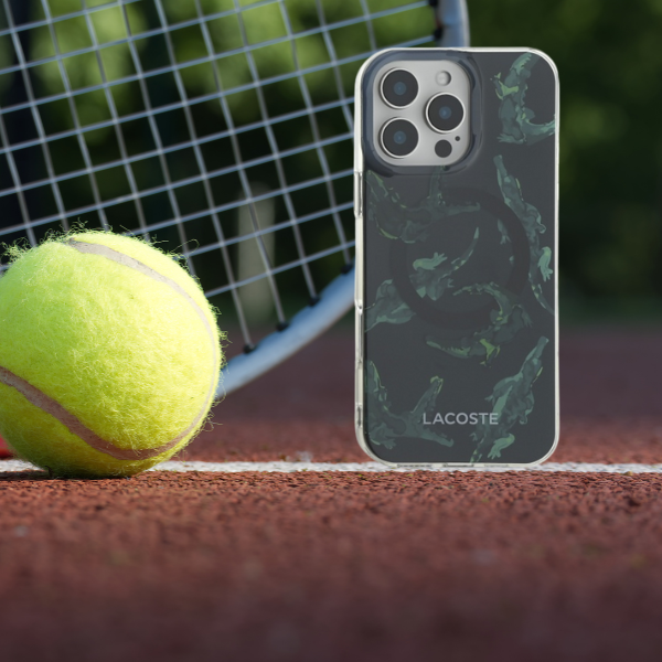 Modelul exclusiv care acoperă întreaga suprafață a husei captează perfect stilul unic al brandului Lacoste, oferind dispozitivului un aspect modern și elegant. Colecția este împodobită cu imagini ale iconicului crocodil și logo-ului Lacoste.