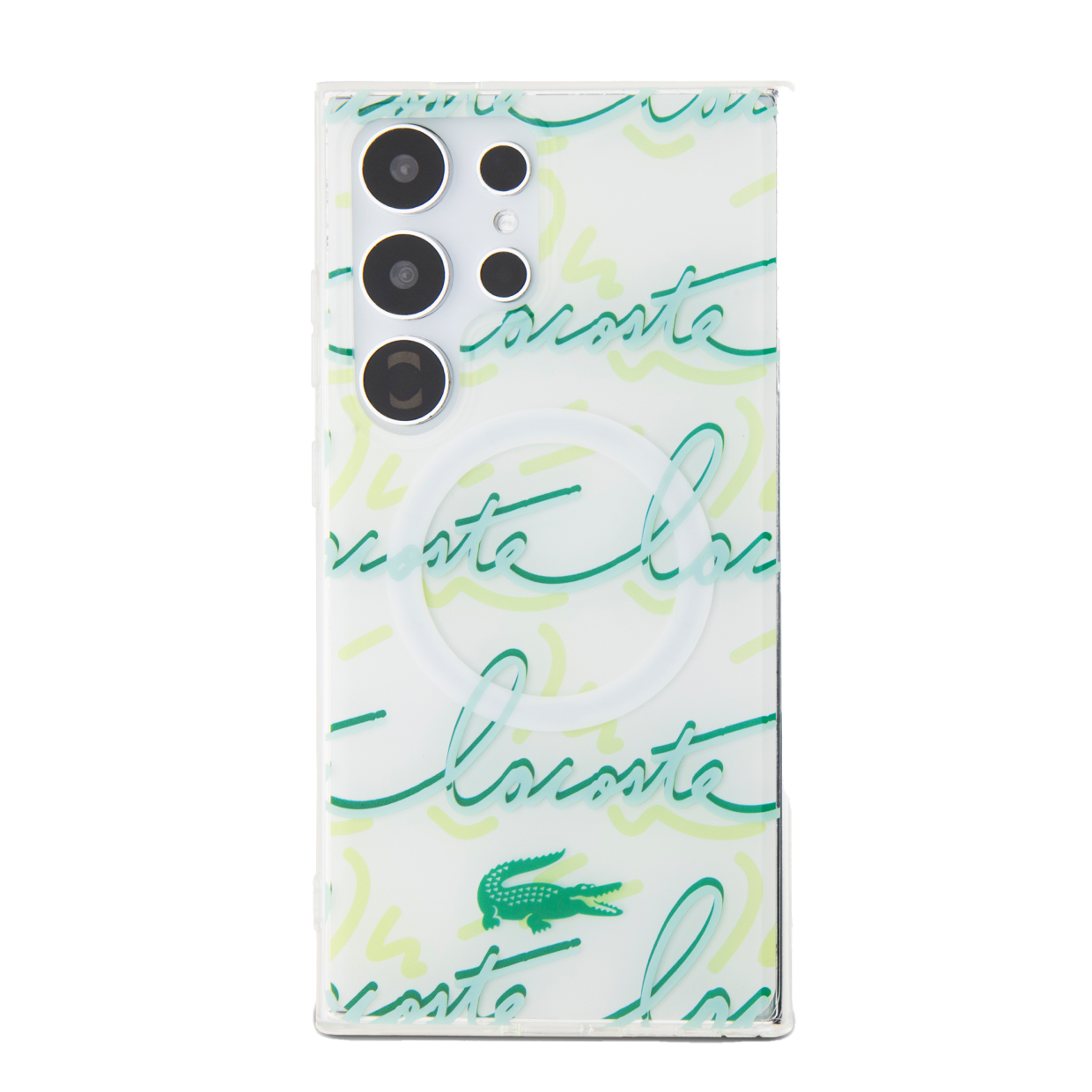 Carcasa Lacoste Logo Script cu MagSafe compatibila cu Samsung Galaxy S24 Ultra, Alb