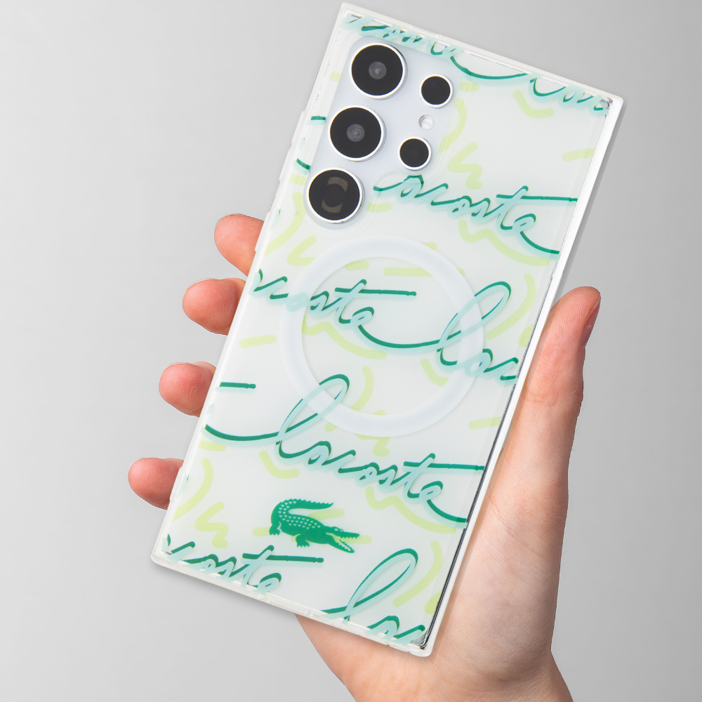 Carcasa Lacoste Logo Script cu MagSafe compatibila cu Samsung Galaxy S24 Ultra, Alb Cod produs: LAC-175342