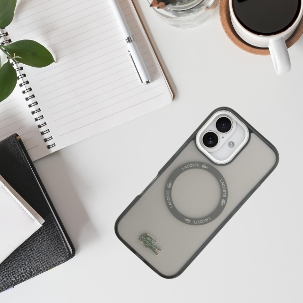Carcasa Lacoste Shockproof Transparent Frosted cu MagSafe compatibila cu iPhone 17, Gri