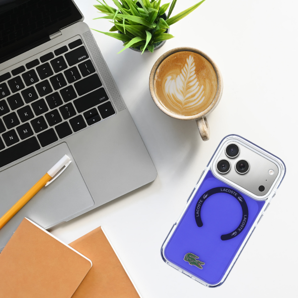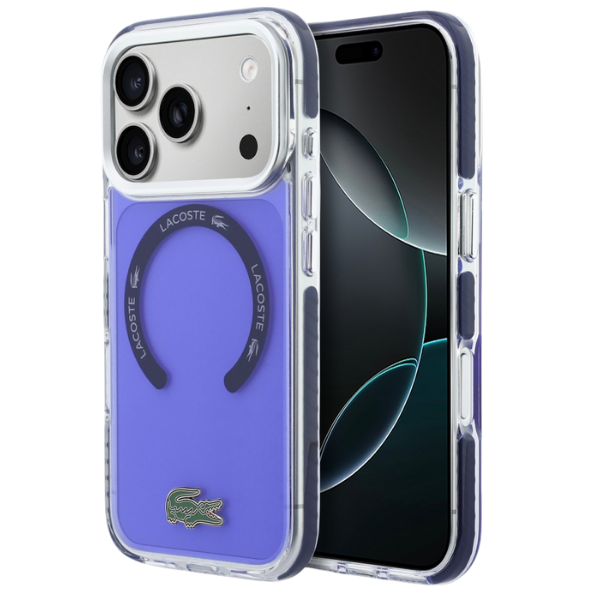 Carcasa Lacoste Shockproof Transparent Frosted cu MagSafe compatibila cu iPhone 17 Pro, Marine Blue Cod produs: LAC-177427
