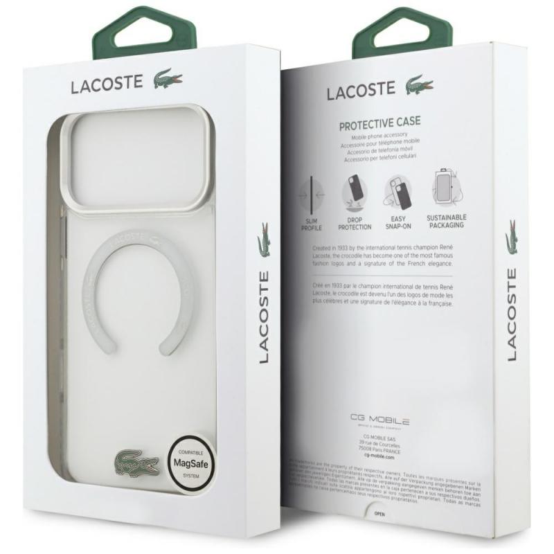 Carcasa Lacoste Shockproof Transparent Frosted cu MagSafe compatibila cu iPhone 17 Pro Max, Alb Cod produs: LAC-175589