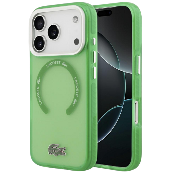 Carcasa Lacoste Shockproof Transparent Frosted cu MagSafe compatibila cu iPhone 17 Pro, Verde Cod produs: LAC-175606