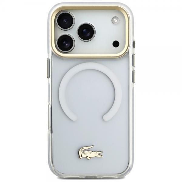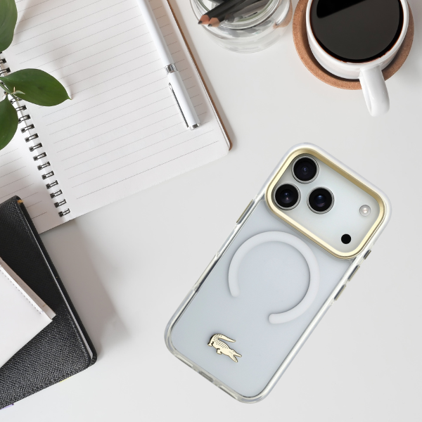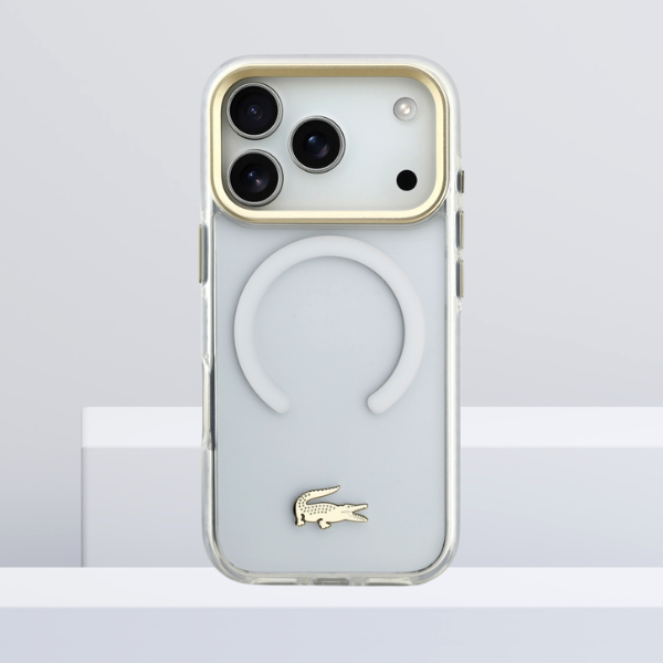 Carcasa Lacoste Shockproof Transparent Frosted Gold Logo cu MagSafe compatibila cu iPhone 17 Pro, Alb Cod produs: LAC-175584