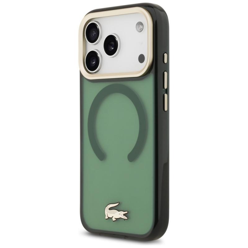 Carcasa Lacoste Shockproof Transparent Frosted Gold Logo cu MagSafe compatibila cu iPhone 17 Pro, Verde