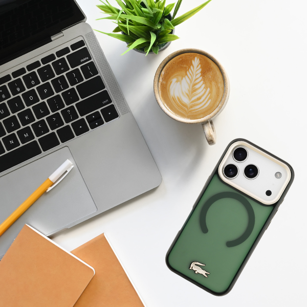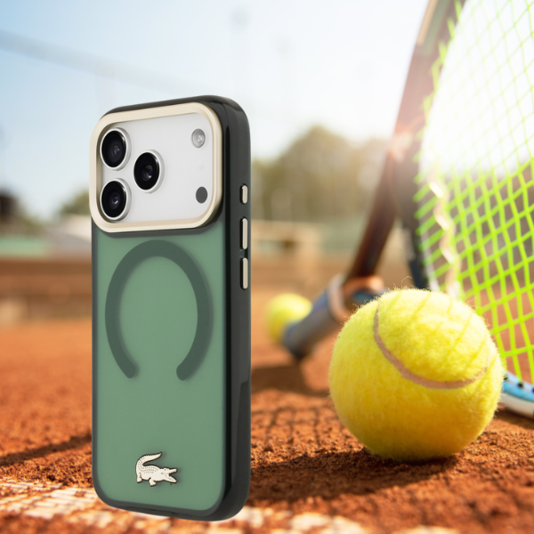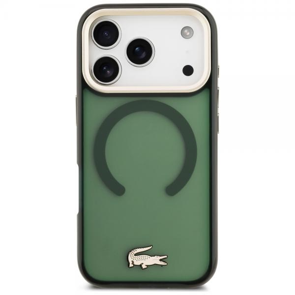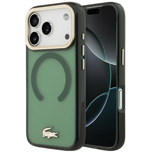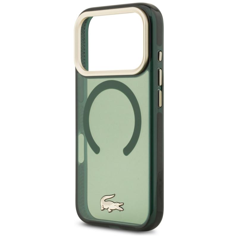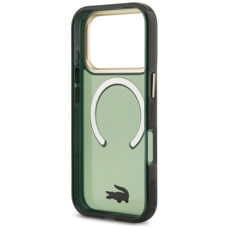Carcasa Lacoste Shockproof Transparent Frosted Gold Logo cu MagSafe compatibila cu iPhone 17 Pro, Verde Cod produs: LAC-175587