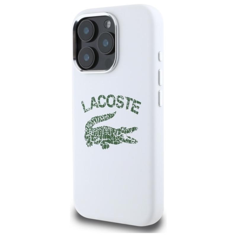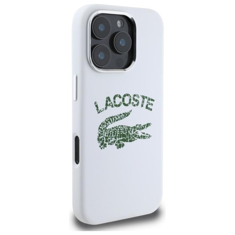 Carcasa Lacoste Silicone Cracked Logo cu MagSafe compatibila cu iPhone 16 Pro, Alb Cod produs: LAC-175467