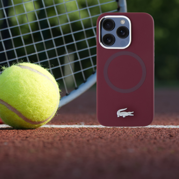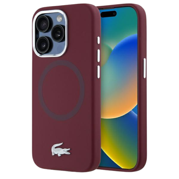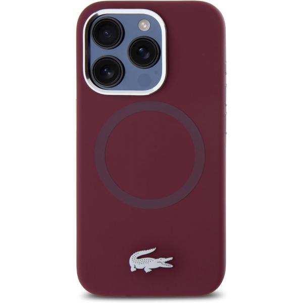 Carcasa Lacoste Silicone Croco Logo cu MagSafe compatibila cu iPhone 15 Pro Max, Bordeaux