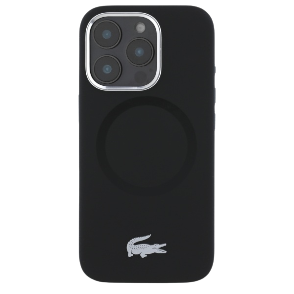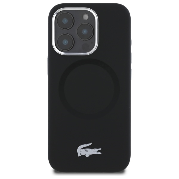 Carcasa Lacoste Silicone Croco Logo cu MagSafe compatibila cu iPhone 16 Pro, Negru