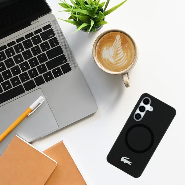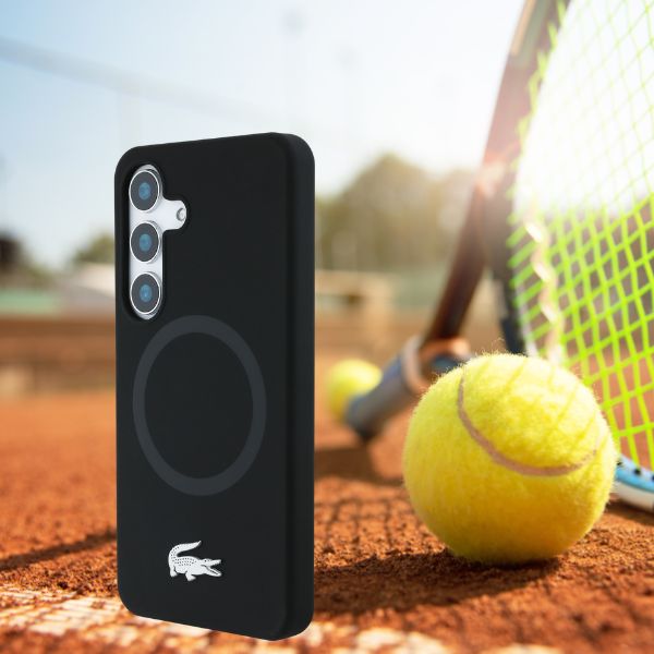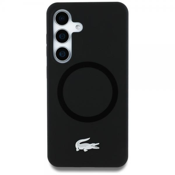 Carcasa Lacoste Silicone Microfiber Silver Croc Logo cu MagSafe compatibila cu Samsung Galaxy S25, Negru