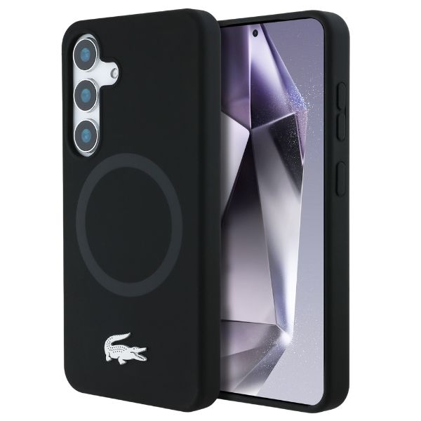 Carcasa Lacoste Silicone Microfiber Silver Croc Logo cu MagSafe compatibila cu Samsung Galaxy S25, Negru Cod produs: LAC-175610
